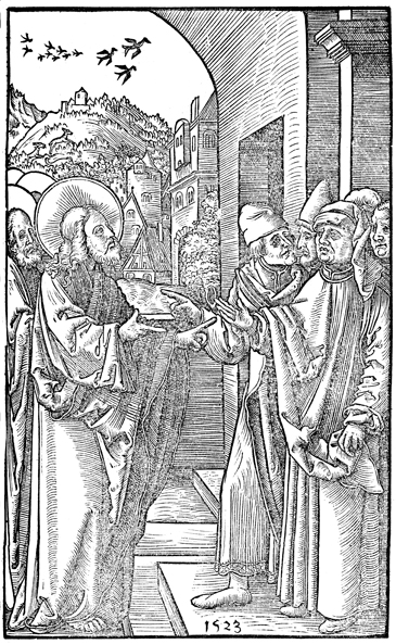 The Pharisees here and elsewhere are shown to attend solely to the externalities of religion7 (Mk. 7:1-23); inwardly they are at variance with their outward demeanor and claims. In this passage, their hypocrisy is evident in their true but malevolent words (14) that cloak the intent “to catch [Jesus] in his words” (13). In keeping to their outward orientation, they ask Jesus about the act of giving tribute to Caesar: “Shall we give, or shall we not give?” (15) Jesus not only escapes the trap they lay for him8 but also points to the Pharisees’ failure to give tribute to God. For just as the penny is imprinted with Caesar’s image, so is man created in the image of God: “So God created man in his own image, in the image of God created he him; male and female created he them” (Gen. 1:27). And as the penny bearing Caesar’s image belongs to Caesar, so man, created in the image of God, belongs to Him. Jesus has moved the Pharisees’ attention from outward activity – paying or not paying tribute – to the inward, core obligation of man: to render himself unto God.