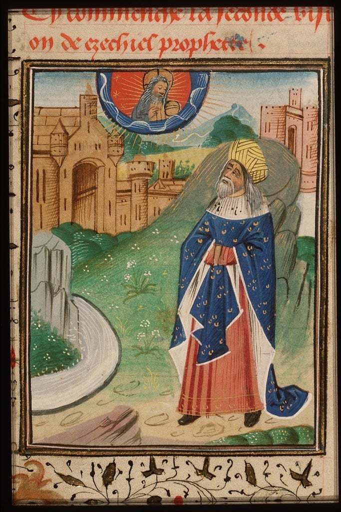 The Prophet Ezekiel Writing, 1465, Medieval manuscript in National Library Netherlands